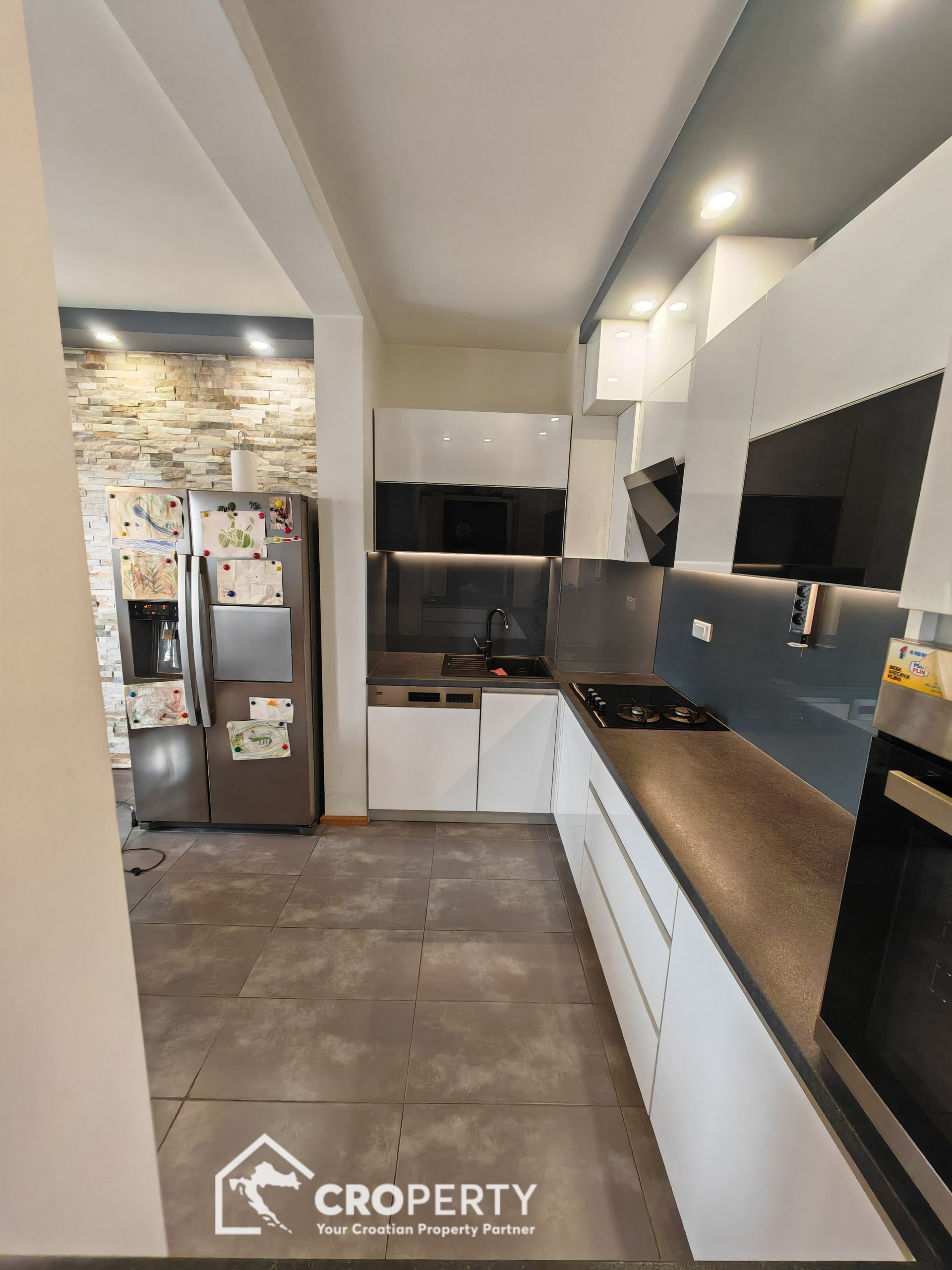 Ovaj stan odlikuje odličan raspored, obilje prirodnog svjetla te visoka kvaliteta uređenja. Prodaje se kompletno namješten, a namještaj je uključen u cijenu.